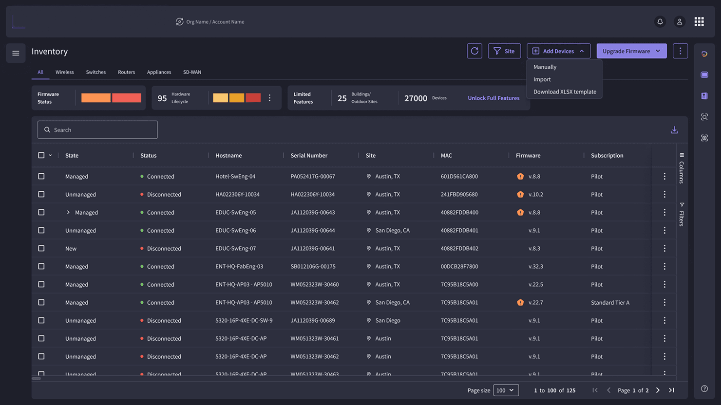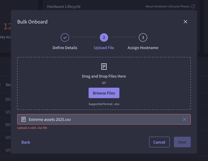 Bulk onboarding now supports mixed device types via .xlsx upload, removing previous file format(csv) constraints.