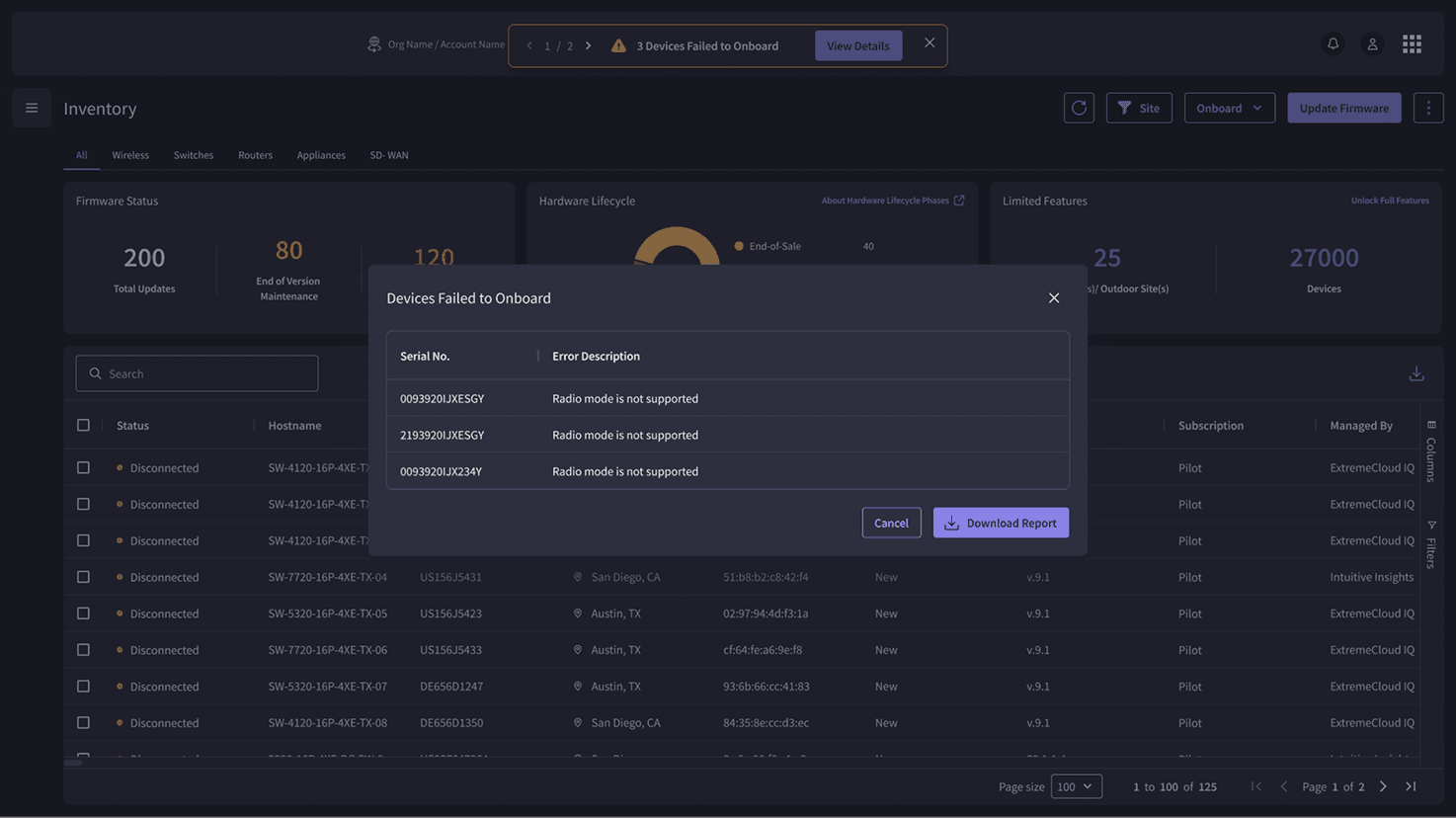 Network admins can instantly identify failed serial numbers and edit or remove them without restarting the flow.